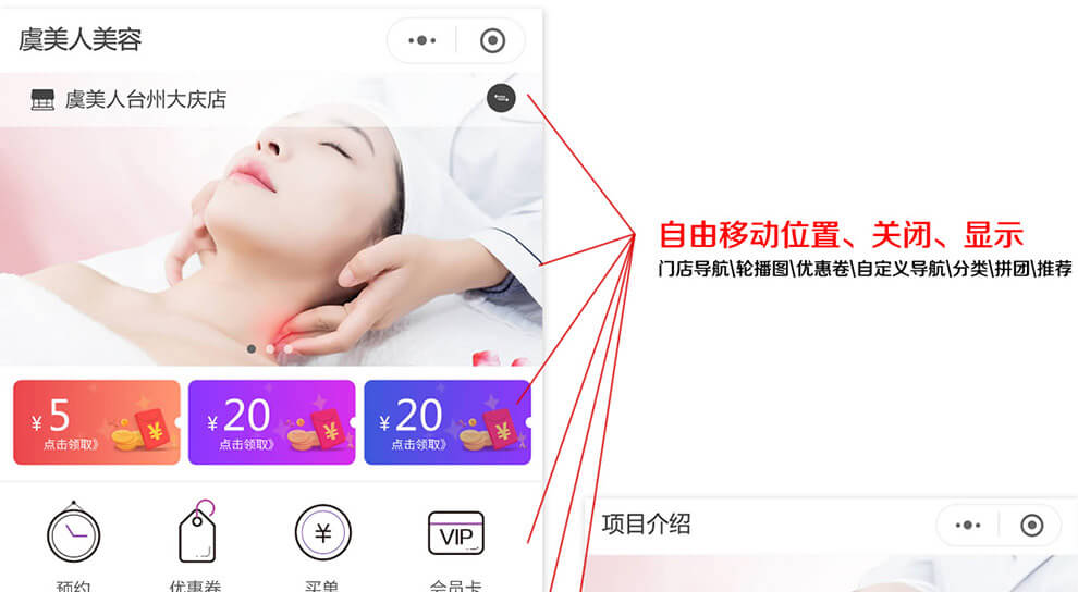 本模块可拓展到适应更多的多服务行业!!!分销、拼团、秒杀、砍价、直播购物。签到大转盘抽奖、三级分销功能(可自由切换一级二级三级)、活动文章分享、手机管理功能、买单功能、客服、多门店、技师、预约、项目、增加管理员手机端关闭指定日期预约功能.....